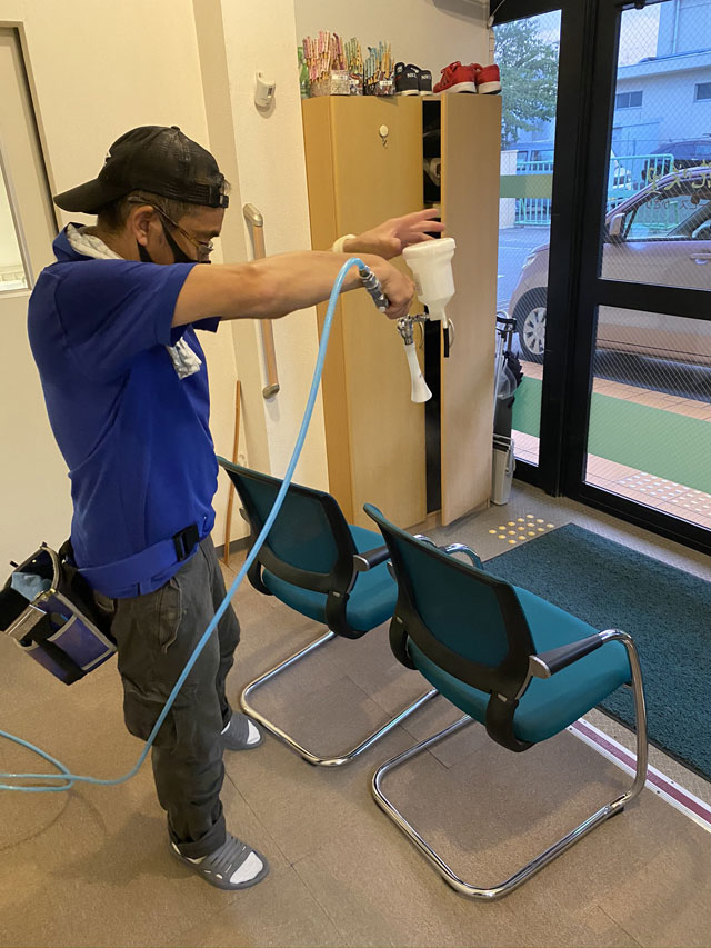 壁面・椅子・機材も全てコーティングを行っております。