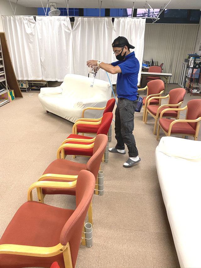 壁面・椅子・機材も全てコーティングを行っております。